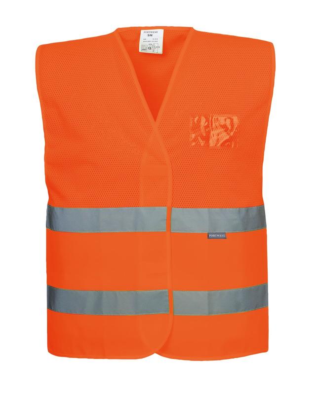 Жилет з повітропроникної сітчастої тканини з кишенею для посвідчення для теплих погодних умов.